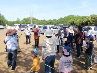 快晴微風の絶好の観察会日和。早朝から池での釣りの人が押し掛けていて、駐車場は既にいっぱい。観察会参加者の駐車を心配したが、帰る釣り人もいたり、お互いの車を寄せあったりして、何とか納まった。