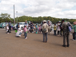 天気予報は「曇りのち雨」であったが、朝から晴れ。開始の9時30分にはタモ網や虫かごを持った親子連れさんが次々に。