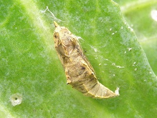 【左】モンシロチョウのサナギ 【中】シバミノガ? 【右】キリギリスの仲間の幼虫