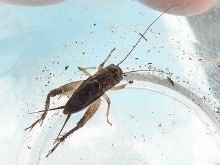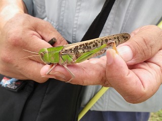 【左】トノサマバッタ(胸背に模様がなく、盛り上がっていません) 【中】ツチイナゴ 【右】コオロギ類?