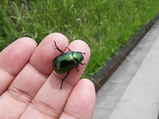 【左】ショウリョウバッタ幼虫 【中】コガネムシ(知多半島ではあまり見かけません) 【右】マルガタゴミムシ類