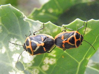 【左】ナガメが結婚していました。 【中】ホソハリカメムシ 【右】ハナバチ類