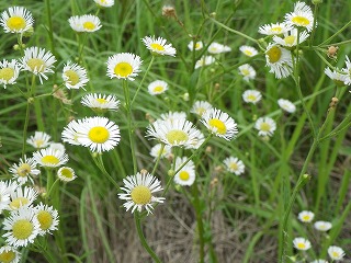 【左】粘菌の一種 【中】ヒメジョオン 【右】チガヤ