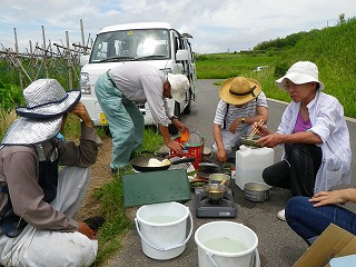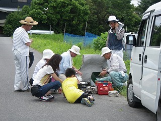 南陵公民館で集合、その後竹内さんの畑まで移動。期待通りにいろいろな虫を発見。こどもは植えられていたにんじんを掘っていただき大感激でした。くもは種類によって巣の模様が違うなどいろいろと教えていただきました。今回も野草の試食あり。水野由美子 先日はありがとうございました。内容の方、修正して載せて下さい。よろしくお願いします。その日の夕飯はいただいた野草の天ぷらで話がもりあがりました。すみれが大人気。大人はゆきのしたの苦味が旨いと喜んでおりました(記・水野由 )