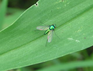 【左】アシナガキンバエ類(体長3ミリほど。これでも小さな虫を捕食するハンターだそうです)