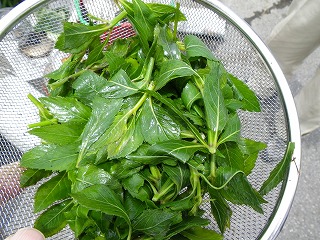 【左】御浸しを作りました。 【中】スミレを試食したらヌメリがありました。 【右】ツリガネニンジン(トトキ)の御浸し