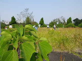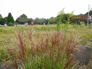 ススキ、クズ、セイタカアワダチソウ、ヒヨドリバナ、コセンダングサ、イネ科の雑草群