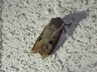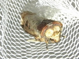 【左】朽ち木下に虫がいました。 【中】ヤガ類 【右】キバラモクメキリガ?