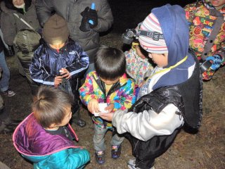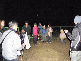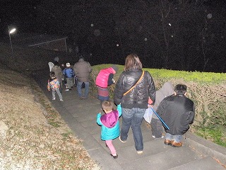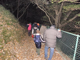 灯火観察設備を設置後、ナイトハイクに出掛けました。大曽大池の北側の森の縁に作られらた散策路を動物園の方向に向かい進みました。コースの中に森、草原、湧き水など変化に富んだ環境があり、色々な生きものを観察でき皆さん楽しいナイトハイクができました。 冬の星空観察は、あいにくの曇り空で、雲間から時折り月がのぞきましたが月見は断念しました。最後尾に森田さんが撮影された皆既月食と牡牛座のアルデバランが載せてありますのでご覧ください。(降幡 記)