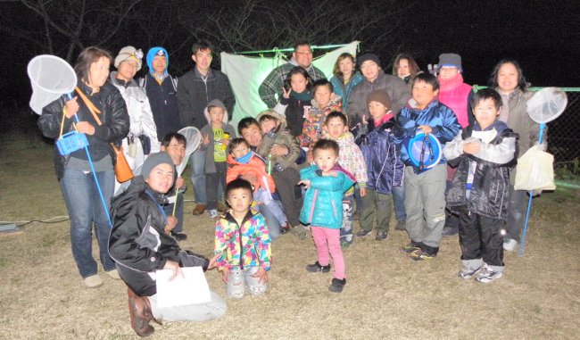夜、水銀灯を点し、虫さんを集めて観察をすることはどちらかというと少し変わった行事になります。しかも寒い冬に行なうことは、よほどの虫気狂がやることです。そんな中、たくさんの参加者がありました。