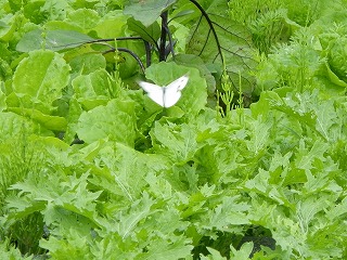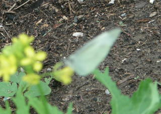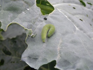 【左】飛び交うモンシロチョウ 【中】モンシロチョウ 【右】モンシロチョウ (幼虫・キャベツやブロッコリーを食べる)