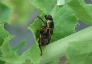 【左】キスジノミハムシ?(体長2.3ミリ程。アブラナ科植物を食べます)