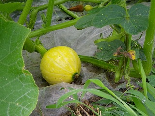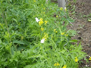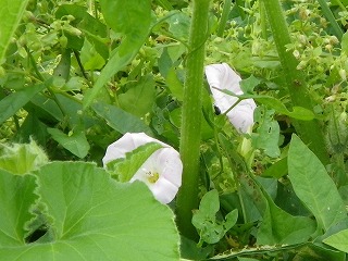 【左】カボチャ 【中】カボチャ畑に咲くヒルガオ 【右】菜の花畑の菜種