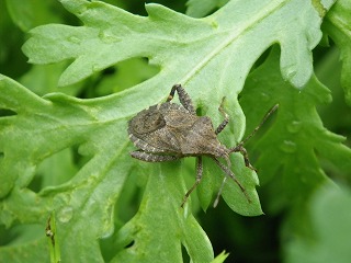 【左】ホオズキカメムシ(ナス科の他サツマイモの葉も食べる) 【中】ホソハリカメムシ(イネ科を食べる) 【右】ヤドリバエ類(?)