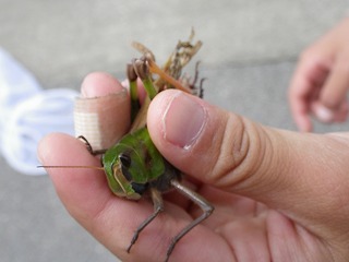 【左】ノイエバエ(?) 【中】ササキリ類(幼虫) 【右】トノサマバツタ