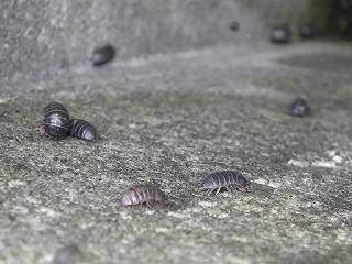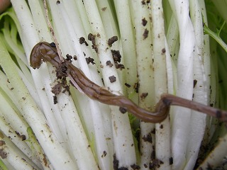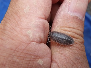 【左】キクナに付いていたコウガイビル 【中】ワラジムシ 【右】排水溝に集まっていたオカダンゴムシの群れ