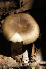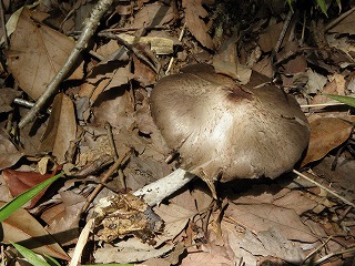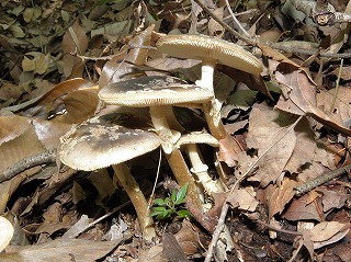 【左】いい顔で記念写真          【右】オシッコ跡に出るオシッコタケと言われているカレバキツネタケ(食)