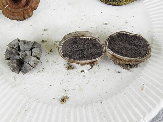 【左】ツチグリ            【中】ミドリニガイグチ            【右】ヒイロタケ