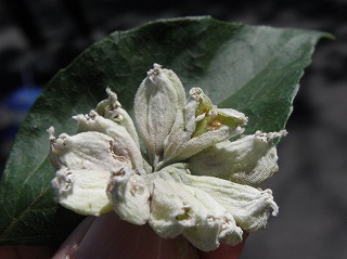【左】エゴノキに付いたエゴノネコアシアブラムシが作った虫こぶ       【中】コナラの芽生え      【右】シャシャンボの花