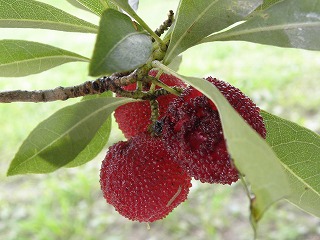 11時ころ、参加者の採ったキノコの説明を降幡指導員より受け、公園管理の方の行為でヤマモモの実を味わった・・甘酢っぱい美味しい・・(記・中井三)