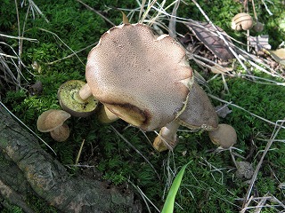 森に入る前にシバフタケをみつけた。森ですぐにカレバキツネダケを見つけアンモニア菌のあるとこに出るキノコ・・・おしっこきのこ・・・を聞いた参加者は爆笑。 森の中は思ったよりも涼しく沢山のキノコをみつけた。