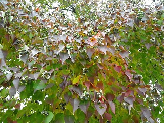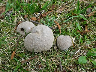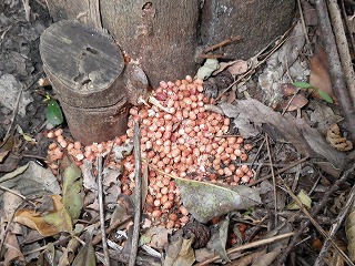 【左】紅葉したナンキンハゼと種子 【中】キクメタケの老菌? 【右】クルマバッタモドキ