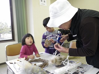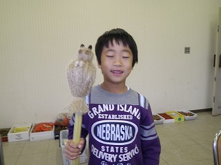 【左】工作のお手伝い 【中】フクロウが出来たよ! 【右】こんなに沢山作りました。