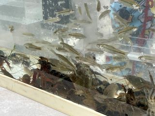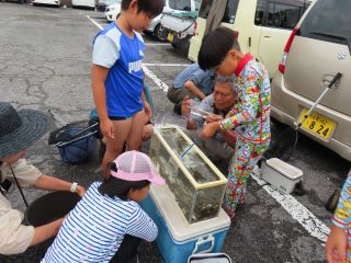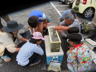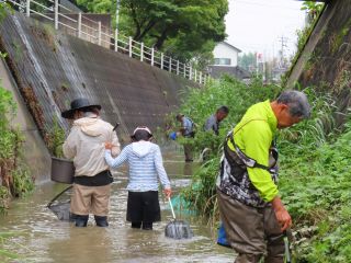 注意事項の説明をして川に入りましたが、増水して普段は草むらになっているところまで冠水していたので、採集はちょっと難しかったです。種類は少なかったけど、数はそこそこ捕れました。終わりがけに常連さん親子が参加してくれました。 (記 平松裕)