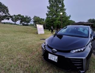 初めての取り組みとして、市の公用車の燃料電池自動車「MIRAI」から取り出した電気を、ライトトラップに使用する電球を点灯させるための電力として使用した。