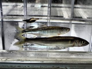 【中】婚姻色のでかかったオイカワと スマートな鮎 |