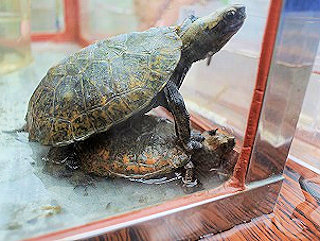 【左】生き物たちの生態に興味津々 【右】人気だったニホンイシガメ