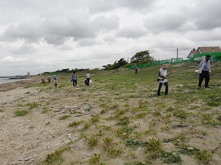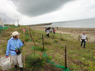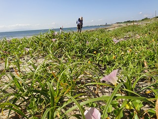 【左】砂丘前景 【中】ハマボウフウ群落 【右】ハマヒルガオ群落
