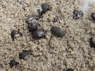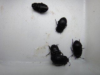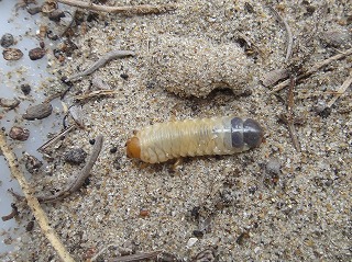 【左】スナゴミムシダマシの仲間 【中】同左 【右】コガネムシ類の幼虫