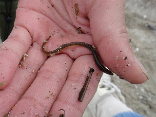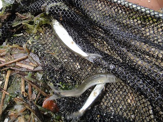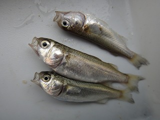 【左】ボラ稚魚 【中】ボラ稚魚 【右】ハゼ稚魚