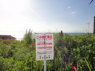 【左】ハマダイコン 【中】ハマダイコン種子 【右】ごみ捨て禁止