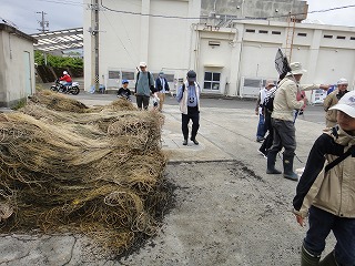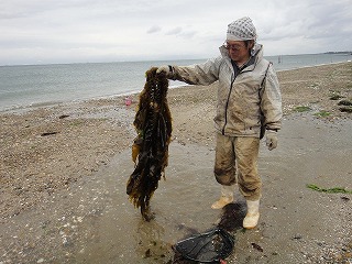 【左】海苔網洗浄場 【中】ボラ干物 【右】漂着ワカメ
