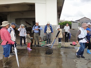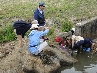 【左】排水路潮溜まり 【中】稚魚採集 【右】