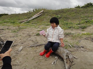 【左】 【中】ハマヒルガオ花束を持って 【右】まとめ