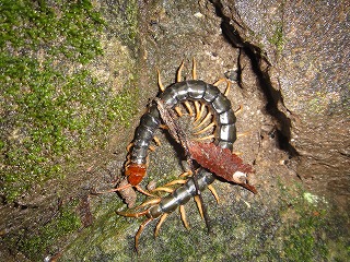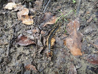 【左】トビズムカデ 【中】クマゼミ(幼虫) 【右】ナメクジ