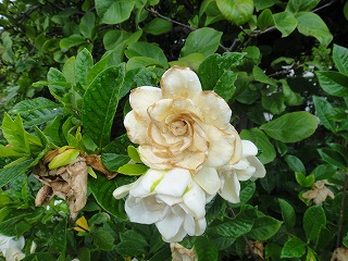 【左】とうかいシンボル 【中】クチナシ開花中 【右】アオギリ開花中