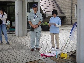 【左】受付 【中】開会、諸注意 【右】緑陰コース観察会スタート