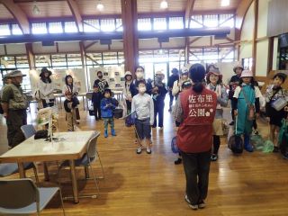 タモやバケツはもちろんこと、胴付き長靴を着用の参加者が多く、川での観察が待ち遠しくて今か今かとの状況が伝わってきて、梅の館で開催の挨拶の後早速川へと向かいました。