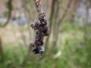 道端に今年もアヘン成分を含むアツミゲシを発見。アツミゲシのつぼみは小さいときはとげ状のものがたくさん生えているが、大きくなるにつれ、とげは取れなめらかになることに気づきました。また、いつもここで活発に動いているナナホシテントウも寒めな気温でじっとしていました。