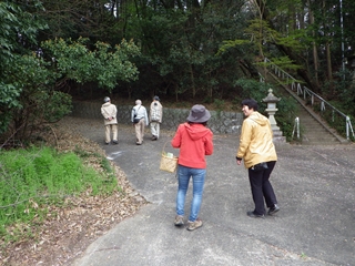 日差しがなく比較的、気温が低めで歩くにはちょうど良い観察日和の中、道路や田んぼ、畑の脇、箭比神社の鎮守の森を観察しました。