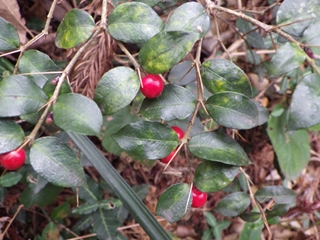 【左】始めて見る木の花 【中】同左の拡大写真 【右】遅れてきたM氏と箭比神社で合流
