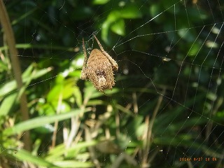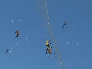 ナナホシテントウ,スズメガの幼虫,ナガコガネグモ,ジョロウグモ,コガタスズメバチ,ハラビロカマキリ,ギンヤンマ,ショウジョウトンボ