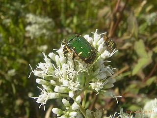 【左】ヒヨドリバナとアオハナムグリ 【中】アサガオ 【右】クコ