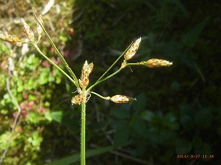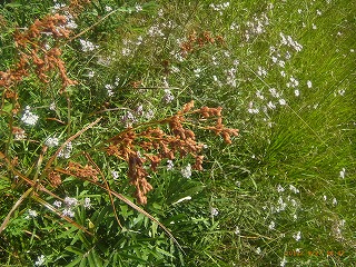 良く晴れて絶好の観察会日和となりました。今回は小さい子供さんの参加のため,山の中の道は通らず表の道から板山高根湿地に向かいました。 湿地はボランティアの方々の保全活動によって,近年ではシラタマホシクサの数も多くなっており,今年もたくさんの花が見られました。 花期はもう終わりがけですが,まだきれいに見ることができました。