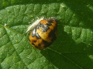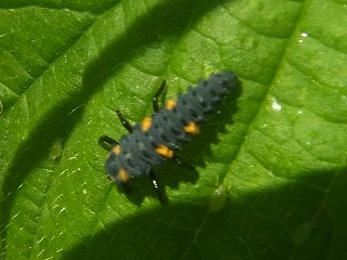 【左】ナナホシテントウ 【中】ナナホシテントウ幼虫 【右】ナナホシテントウ蛹