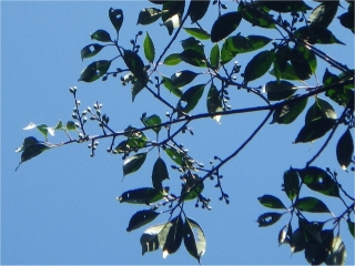 …名前が分かなっかった木があった。頭上高くにシャシャンボ、ヒサカキ、ネズミモチみたいな実を付けて いたが分からなかった。双眼鏡を持っていれば分かったかも知れないが持ってなかった。